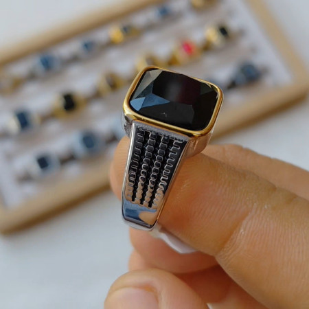 Men's Handmade Onyx Black Stone Ring (SPR0019) [Size 8-12]